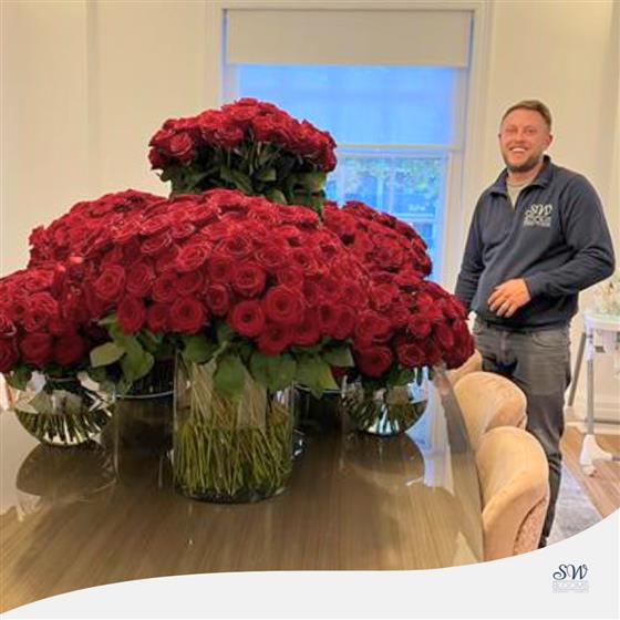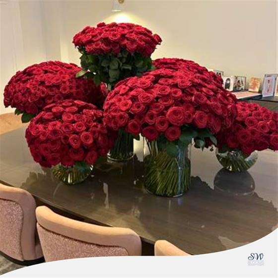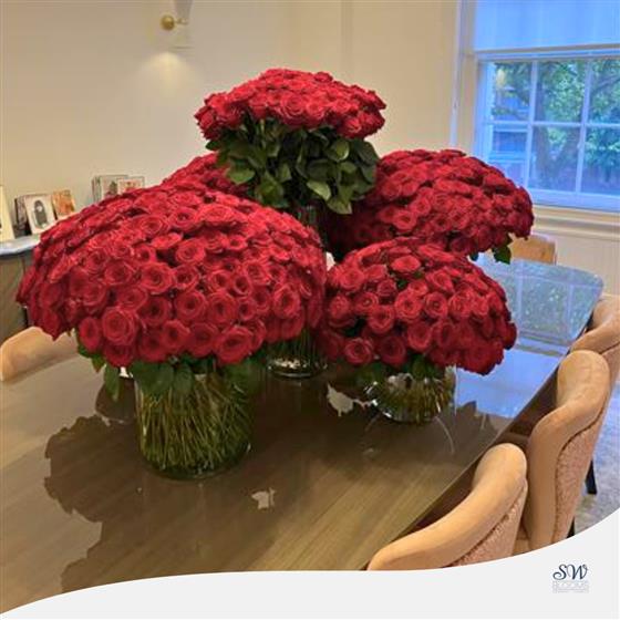 Surprise with our 1000 Naomi/Freedom Red Roses. An opulent arrangement that features 1000 fresh and stunning Roses, meticulously presented in seven vases: