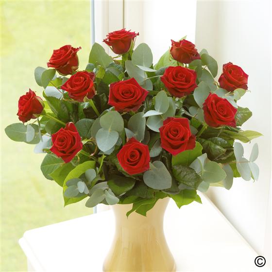 12 Long stemmed 60-70cm Red Roses in gift wrapping.