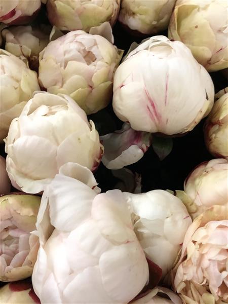20 Long stemmed White/Cream Peonies with foliage wrapped in Brown paper. Ready to go straight into a vase.