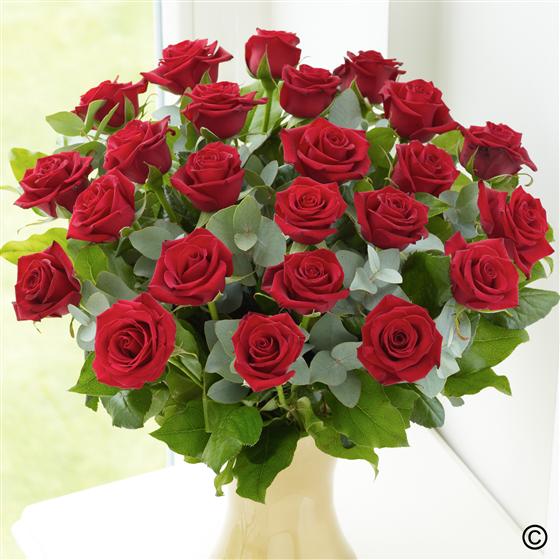 24 Long stemmed 60-70cm Red Roses in gift wrapping.