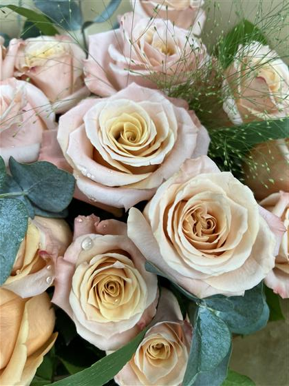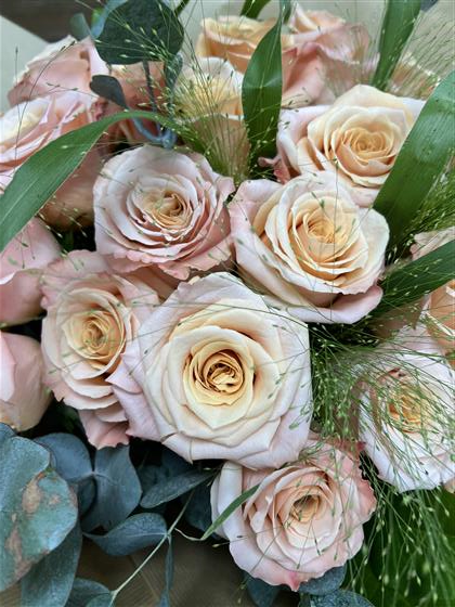 We will make the bouquet up with mixed foliage such as Eucalyptus and Fountain grass as pictured.