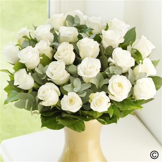 24 Long stemmed 60- 70cm White Roses in gift wrapping.