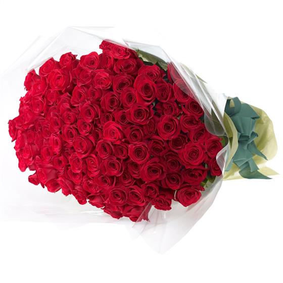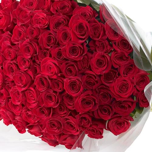 99 Long stemmed Red Roses arranged into a beautiful bouquet with a nice big bow. Plain and simple yet looks elegant.
