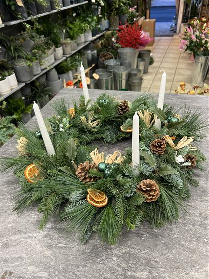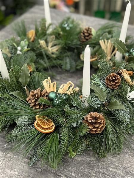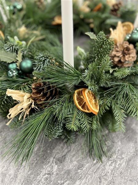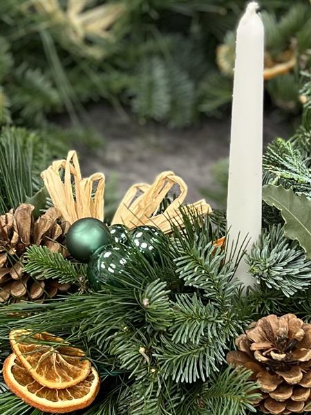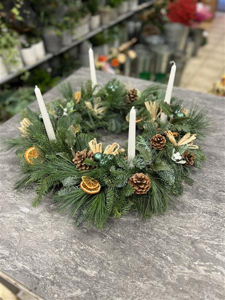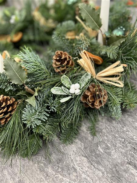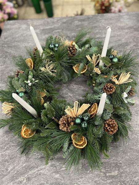 Made with mixed pines and dried decorations it should last all the way through to Christmas.