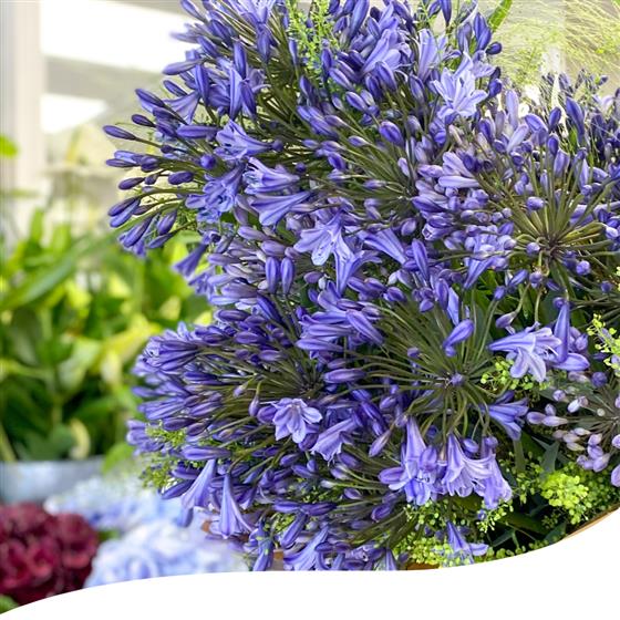 Transform any room into a haven of beauty and sophistication with our stunning Agapanthus Bouquet. Known for their striking, spherical clusters of blossoms, Agapanthus—also called African lilies—will bring an air of elegance and charm to any surroundings.
