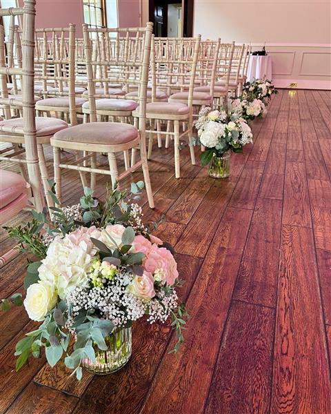 We will create flowers that will give you a beautiful aisle and after the ceremony they can easily be moved around your venue.