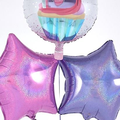 This eye-catching 5th Birthday balloon bouquet is radiant with an array of Pink and Lilac metallic colours – just right for a 5th Birthday. The Star and Circular 45cm micro-foil balloons arrive filled with helium and tied to a weight with curling ribbon decorations.