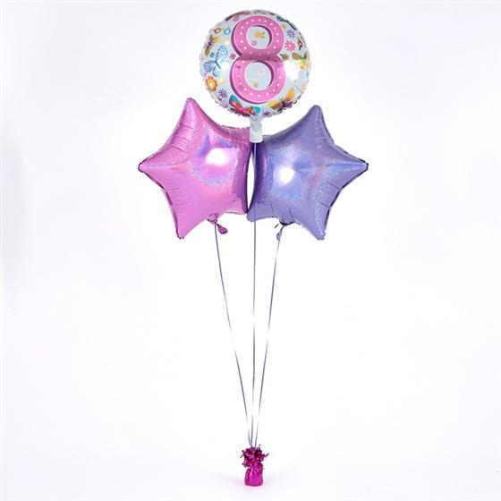 Balloon Bouquet - 8th Birthday Pink & Lilac Starlight
