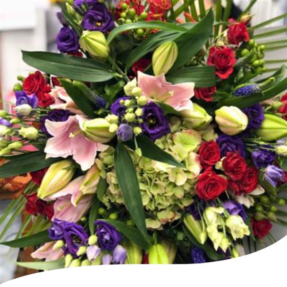 Let our skilled florists craft a stunning arrangement featuring a selection of exquisite blooms, including Lisianthus, Roses, Hydrangeas, Lilies, Veronicas, Ilex Berries, and Hypericum Berries. Each flower is meticulously chosen and expertly arranged to create a symphony of colours and textures. Experience the beauty of nature with this bespoke bouquet, tailored to your preferences. For an even more impressive display, consider upgrading to the Luxury option.