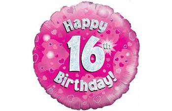 This eye-catching 16th Birthday balloon is radiant with an array of Pink metallic colours and silver sparkles – just right for getting into the party mood. The circular 45cm micro-foil balloon arrives filled with helium and tied to a weight with curling ribbon.