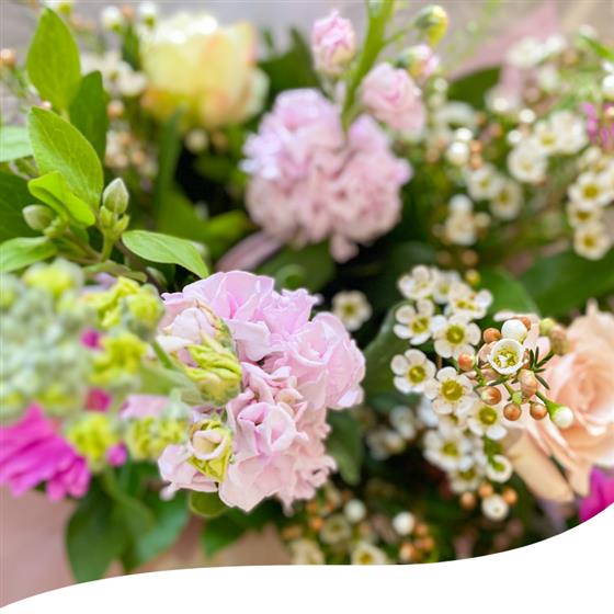 Brighten any space with our Blossom Harmony Bouquet. This stunning arrangement features vibrant Gerbera Daisies, delicate Peach and Yellow Roses, charming Wax Flowers and lush Stocks, creating a beautiful blend of colours and textures.