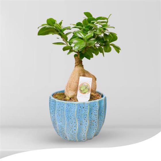 The Ficus Bonsai infuses a sense of uneasiness with its enduring charm and low-maintenance nature. This charming plant will bring the essence of the outdoors into your living space. Elevate your space with the captivating allure of our Ficus Bonsai—a timeless harmony and serenity, presented in a charming pot. Please note that the pot colours may vary.