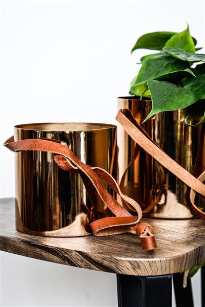 These stunning real copper plant pots come with a nice matching brown leather strap. We think they are simply gorgeous. Perfect for Money plants to hang out of or string of pearls.