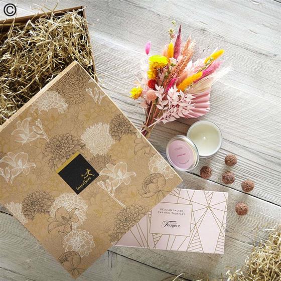 Dried Flowers Gift Set with Candle and Salted Caramel Truffles