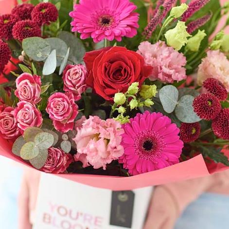 A gorgeous mix of romantic blooms, exquisitely arranged by an artisan florist and safely tucked in a beautiful giftbox. It'll feature blooms in classic love colours including cerise, burgundy and soft pink.