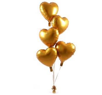Five Heart Balloon Bouquet Gold