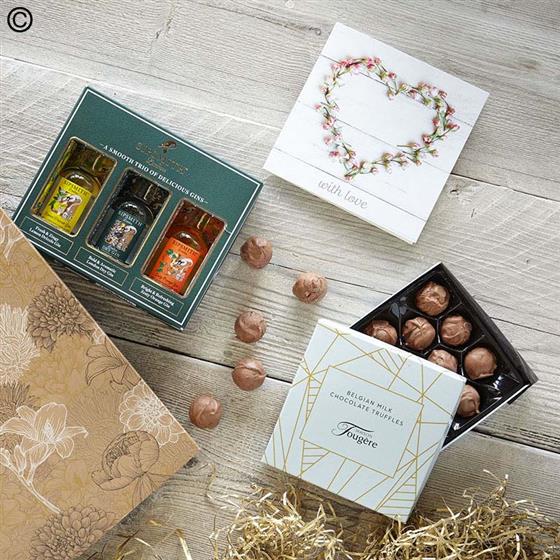 Gin Trio, Chocolate Truffles and Card Gift Set