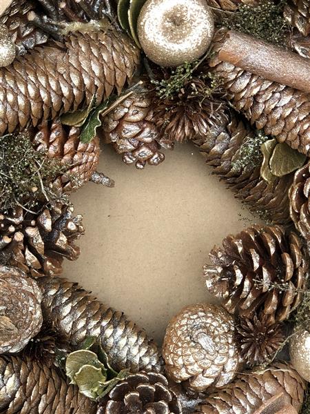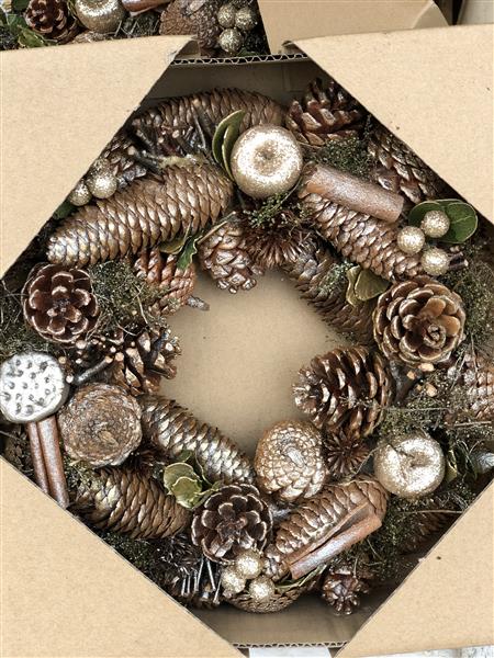 Gold Door Wreath made with Silk, Plastic and Dried items which can be used year on year.