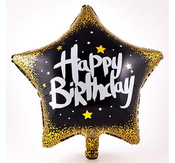 This black and gold “Happy Birthday” star-shaped balloon is perfect for anyone’s birthday.
