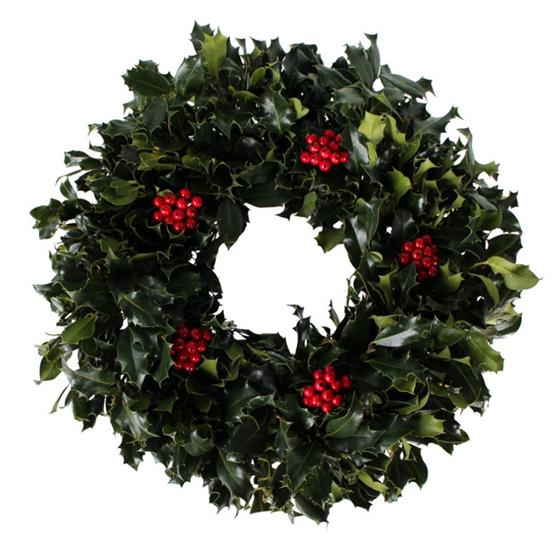 A Holly Wreath with Berries. Standarde Size with optional extras.