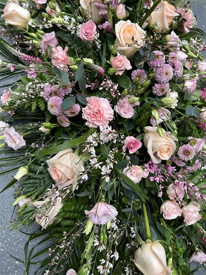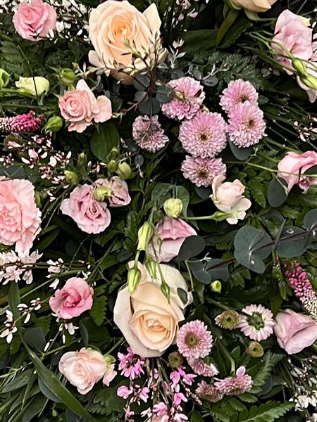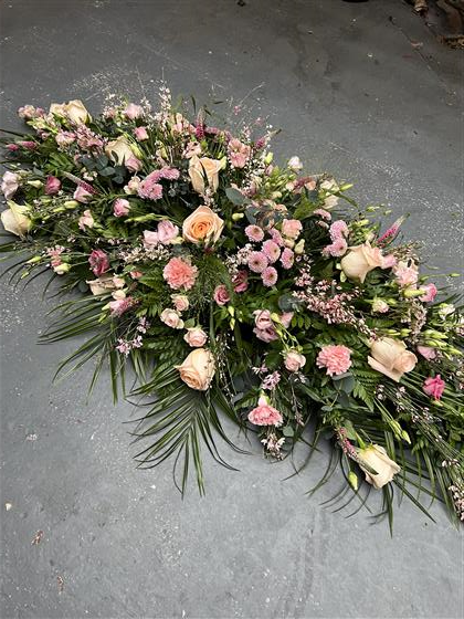 A 6 foot Coffin spray made using the finest pale pink flowers.