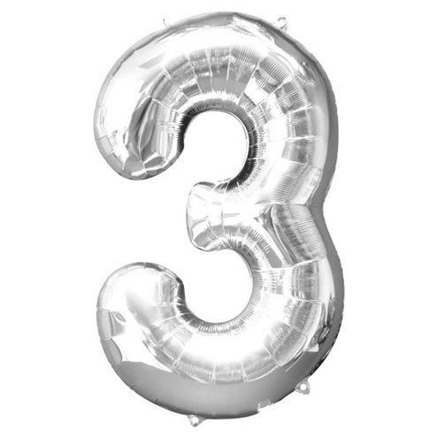 This 34inch Foil Helium filled Ballon arrives with Ribbon decorations and on its own Silver matching weight.