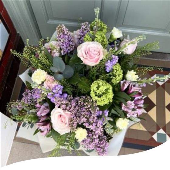 This hand-tied bouquet features a delightful combination of Lilac Syringia and Pale Pink Avalanche Roses, arranged in a beautifullly to captivate anyone's heart. The Lilac Syringia used in this bouquet symbolises the beginning of spring, making this an excellent choice for those who wish to celebrate the renewal of life and new beginnings.