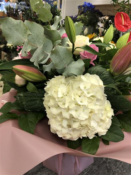 Lily, Peonie, Rose and Hydrangea Hand Tied