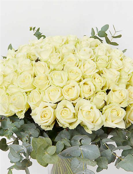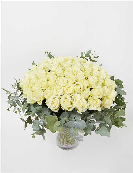 Luxury White Rose Vase with Eucalyptus