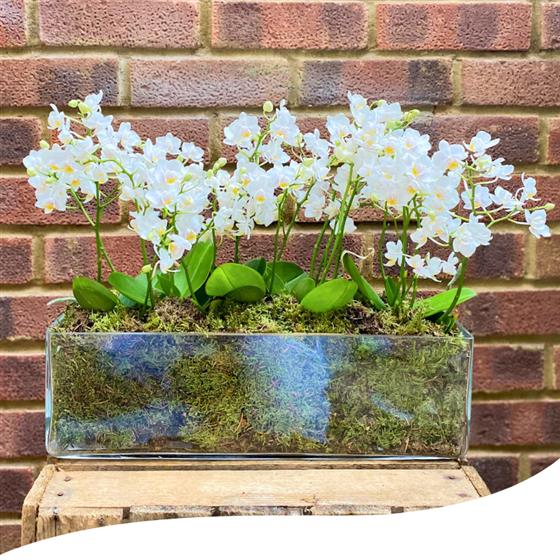 Mini Phalaenopsis Orchid - Rectangular Vase