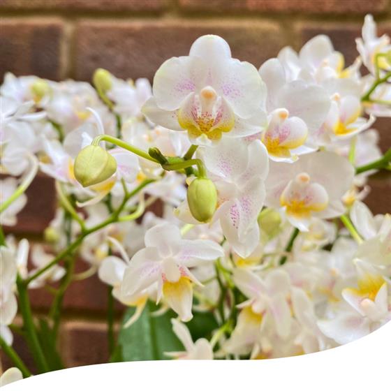 Introducing our stunning Mini Phalaenopsis Orchid, designed to add a touch of elegance and sophistication to any space. Planted in a rectangular transparent vase, this orchid display is perfect for enhancing your decor or as a thoughtful gift for someone special.