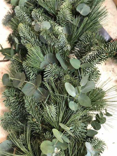 A Fragrant Garland made with Blue Pine, Scots Pine and Eucalytpus.