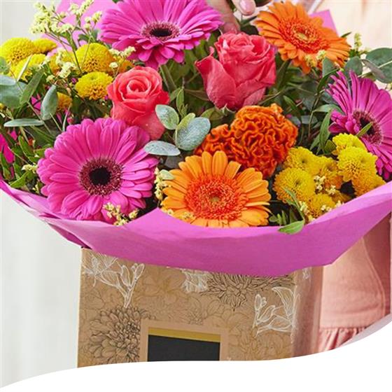 Our Fiesta Flair Lily-Free Hand-Tied Bouquet was created to make this Mother's Day unforgettable! Overflowing with vibrant colours and meticulously handcrafted, it's the ideal choice for celebrating without lilies.