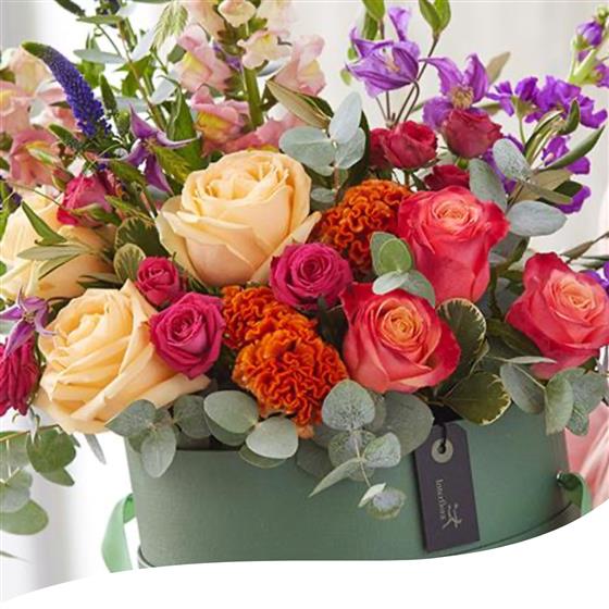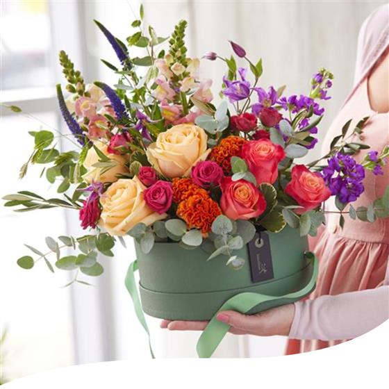 Our Premium Blossoming Joy is a beautifully presented hatbox filled with an array of vibrant blooms expertly arranged by our talented florists. Bursting with colour and joy, this delightful delivery promises to leave a lasting impression on Mum's special day.