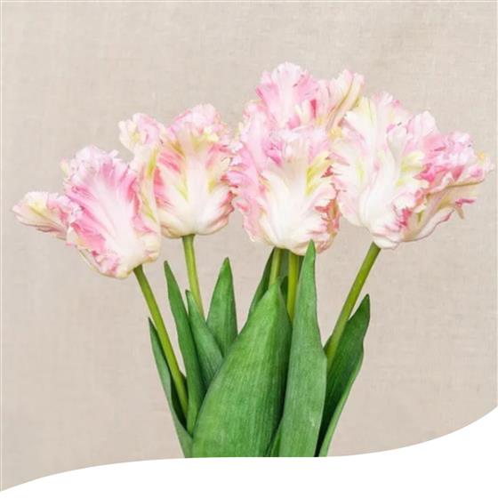 Looking for a thoughtful and beautiful gift for a loved one or friend? Look no further than our stunning Pale Pink Parrot Tulips! Each set includes 20 gorgeous Tulips, hand-tied and elegantly gift-wrapped with Lush Foliage. If you're looking for an even nicer gift, each size up from the standard set includes an additional 10 Tulips.