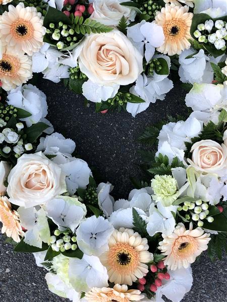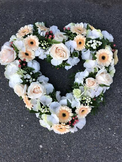 A pastel Open Heart tribute made with different Peach, White and Green Shades.