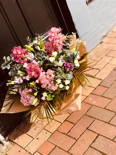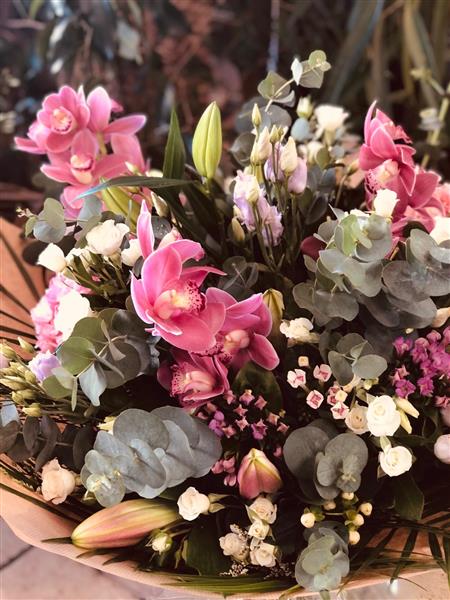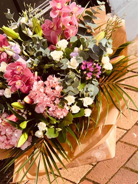 A large bouquet of Hydrangeas, Cymbidiums, Roses, Bouvardia and Lisianthus with extra flowers and foliage. Guaranteed to be fresh and long lasting - Making Scents recommends this bouquet for all occasions as it last really well and uses top quality flowers.