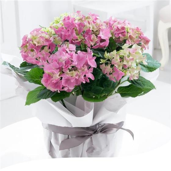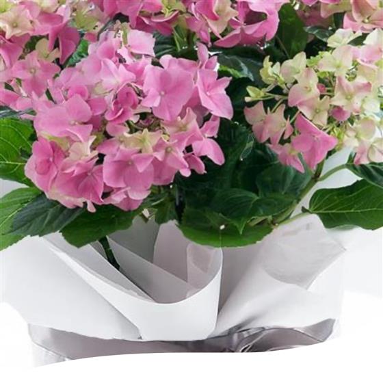 Discover our Gift Wrapped - Pink Hydrangea Plant (Large), a stunning choice for any occasion. This exquisite Hydrangea promises enduring beauty year after year. Opt for the large option for an even more remarkable display. Add a plant pot for a ready-to-display gift that's sure to bring a smile!