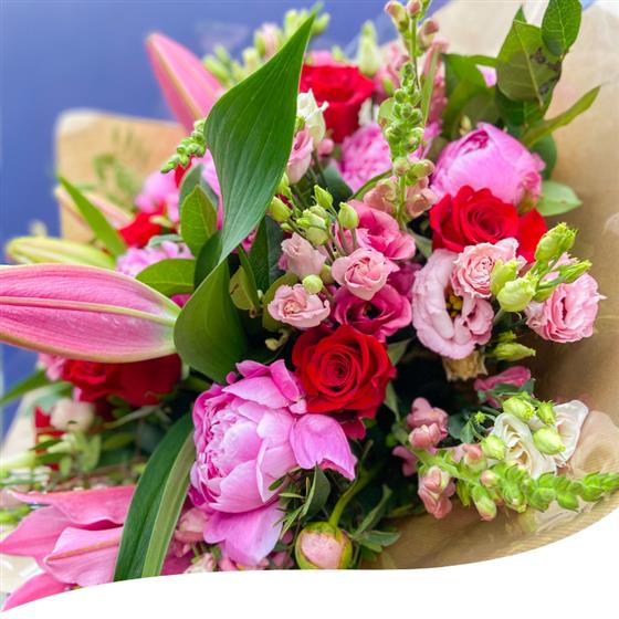 Illuminate someone’s day with our stunning Pink Lilies & Peonies Bouquet. Crafted by our expert florists, this vibrant arrangement includes a delightful mix of fresh Roses, Lilies, and Peonies, all elegantly wrapped in stylish paper. Perfect for any occasion, this bouquet promises to make a lasting impression.