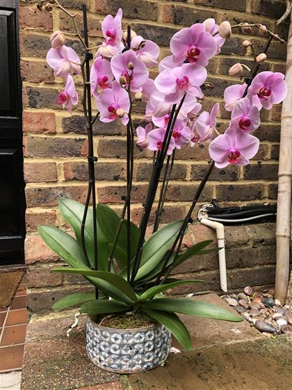 6 Stemmed Pink Orchid Planter. We will use 3 Top quality Phalanopsis Orchid plants with 6 stems and lots of buds planted into a nice bowl. A perfect gift for any occasion.