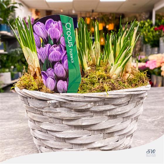 Winter is the optimal time to plant these delightful Crocus bulbs, ensuring you can enjoy their enchanting charm throughout the year. Whether on your windowsill, tabletop or as a centrepiece, this basket is ideal for bringing a springtime feel to your home or as a considerate gift for a loved one.