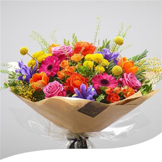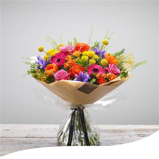 The Spring Lily Free Hand-tied is a beautiful and unique floral arrangement that is sure to brighten up any space. The vibrant spring colour palette of this bouquet is accentuated by contemporary accents, creating a modern yet timeless look. Each design is crafted by our experienced florists using the freshest stems available on the day, ensuring that your gift is not only beautiful but long-lasting as well.