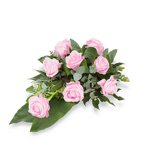 Designed with Large headed Pink Avalanche Roses and a selection of mixed seasonal greenery.