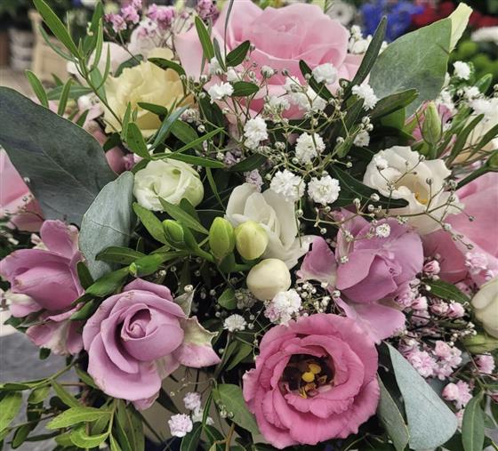A standard pink and white seasonal Bouquet,
