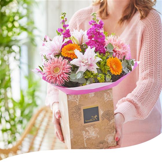 Please note that while your bouquet might differ from the image shown, this is because our skilled florists carefully select the freshest and most vibrant seasonal blooms available each day. The Summer Sunset Bouquet can be created in medium, large, extra-large, deluxe or luxury sizes if you want to make an even bigger impression.