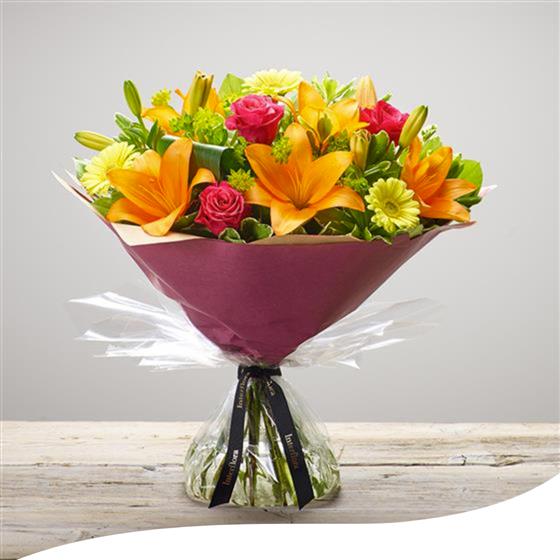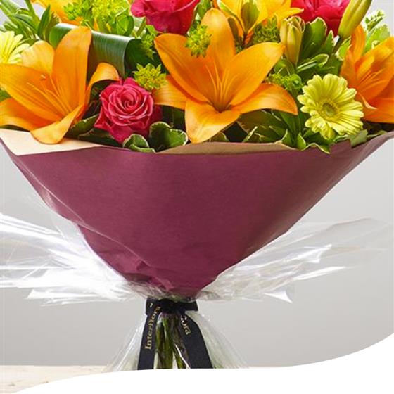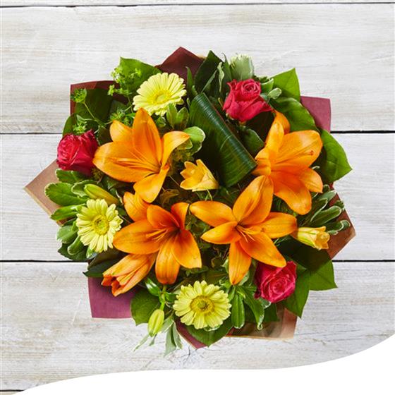 Radiate the warmth of summer with our Summer Sunshine Bouquet, featuring a vibrant mix of orange Lilies and delicate Pink Roses that capture the essence of a sunny day. Delivered aqua-packed and elegantly gift-wrapped, each bouquet arrives fresh and beautifully presented.