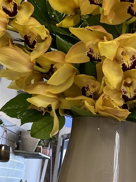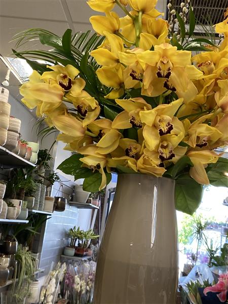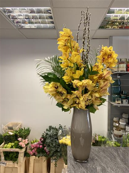 Large Cymbidium Orchid vase arrangement - Available as pictured in yellow or in green, Pink or white.