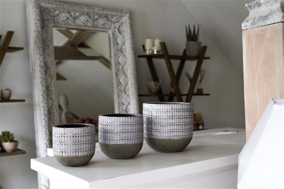 Create a sense of calm and tranquility at home or in the workplace with our waterproof Denim Blush Treviso Indoor Planter. Intricately detailed with a curved base and premium glaze, this textured planter effortlessly charms and captivates. For extra allure, position it close to a window so that light can perfectly reflect it.