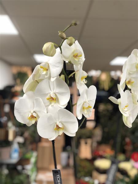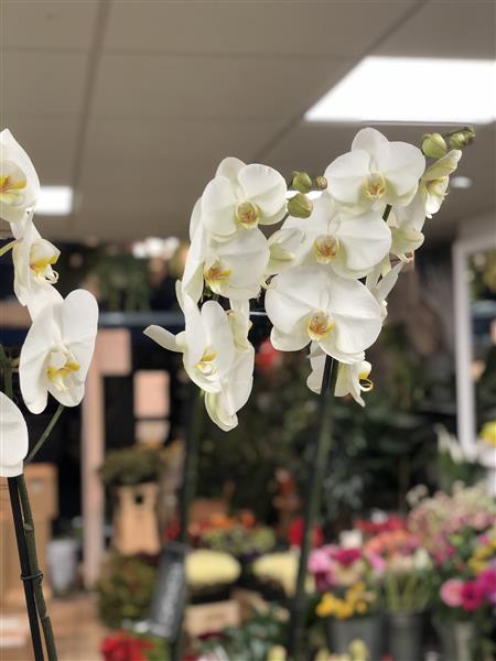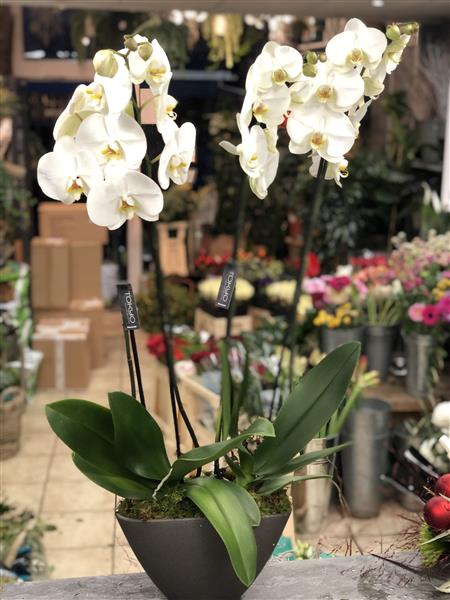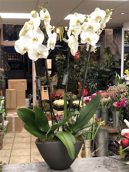2 Large White Phalaenopsis Orchids into a nice container perfect for Christmas