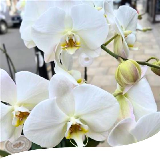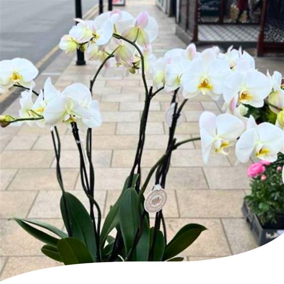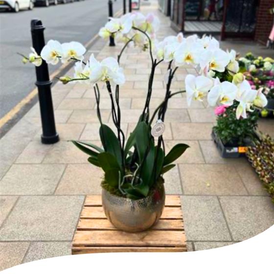 Please be aware that these orchids are larger than average, measuring between 90-120cm tall. While the White Orchids Phalaenopsis Planter is available year-round, we may require a 48-hour notice if we are currently out of stock.